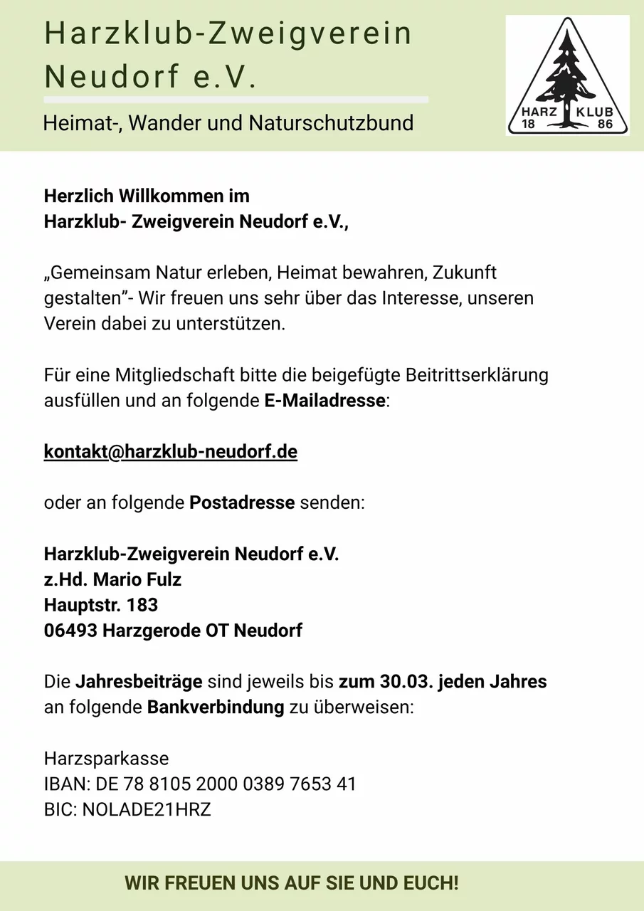 „Gemeinsam Natur erleben, Heimat bewahren, Zukunft gestalten – werde Teil unseres Harzklub-Zweigvereins Neudorf!“