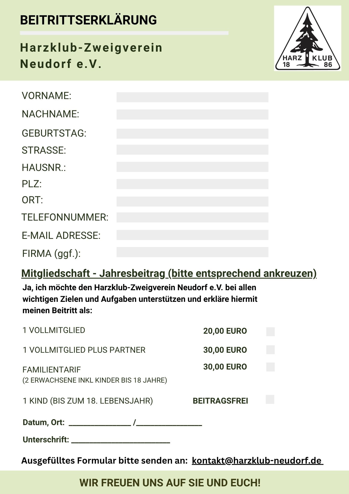 „Gemeinsam Natur erleben, Heimat bewahren, Zukunft gestalten – werde Teil unseres Harzklub-Zweigvereins Neudorf!“