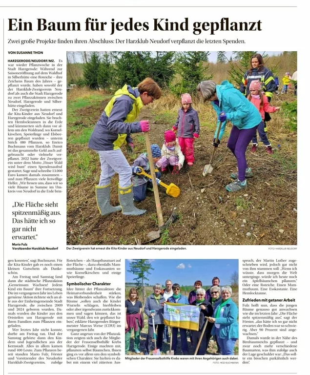 - 25./26.04.2025 Pflanzaktion mit den Harzgeröder Kinder (Verpflegung)